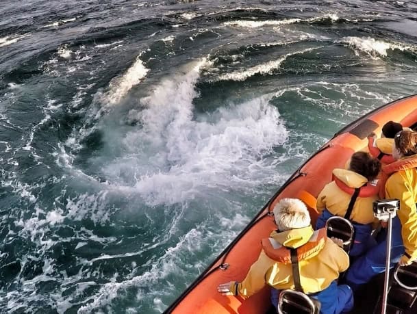 This tour is timed specifically for Spring tides when the whirlpool is most powerful and dramatic. It’s more adventurous, focused purely on the whirlpool experience rather than general wildlife watching.
